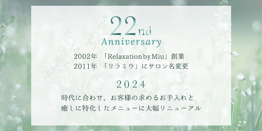 リラミウは、福岡県宗像市にあるエステ・リラクゼーションサロンです。
